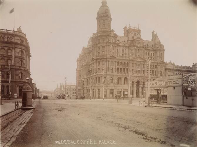 The spree of destruction along Collins Street reached its apogee in 1973 with the demolition of one of Melbourne’s most revered landmarks, the Federal Coffee Palace. The grand Second Empire coffee palace had been allowed to wither across the 20th century, its decline hastened after the collapse of the temperance movement. Its demolition and replacement by an office block reflected both a callous indifference to heritage and the ascendant utilitarian design ethos of the era.